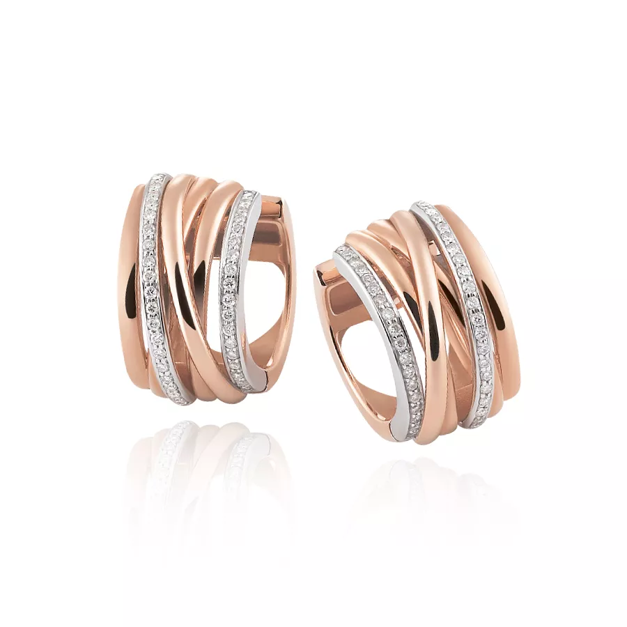 Mezzaluna Ohrringe aus 18 Karat (750) Rosegold von Al Coro. Besetzt mit runden weißen Diamanten im Brillantschliff mit 0,49 ct., Pavé gefasst.