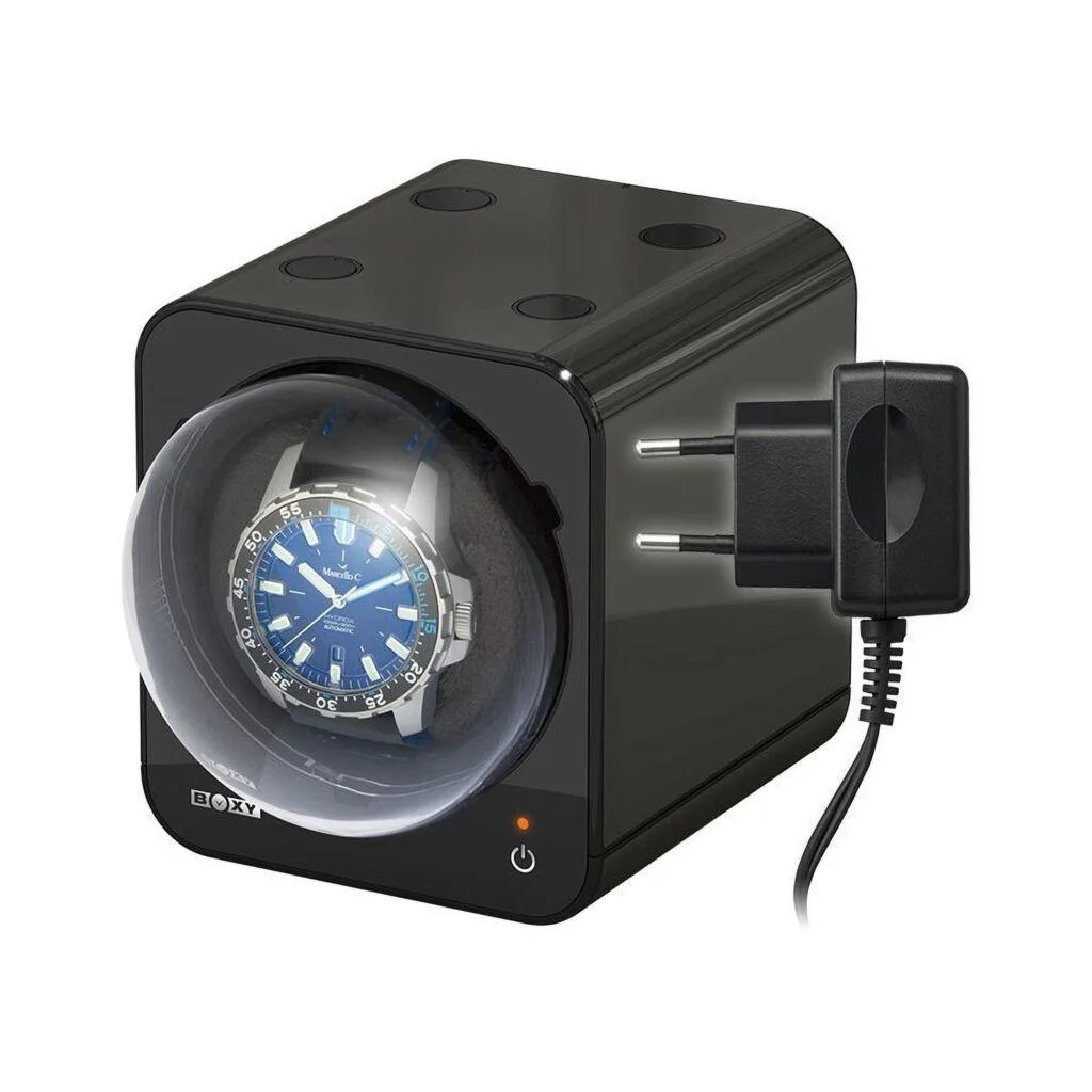 Der Fancy Brick Uhrenbeweger von Boxy ist für die Aufbewahrung einer Uhr geeignet. Für die Aufbewahrung mehrerer Uhren können Fancy Brick Module miteinander kombiniert werden. Auch bei der kombinierten Verwendung mehrerer Module benötigen Sie dank neuester Sharing-Technologie lediglich einen einzigen Netzadapter.