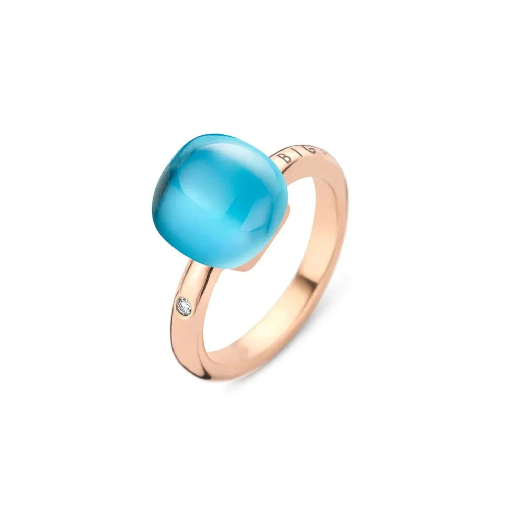 Tauchen Sie ein in die Welt der luxuriösen Eleganz mit dem Bigli Mini Sweety Ring Eclectic Blue. Dieses herausragende Schmuckstück ist aus feinstem 750er Roségold gefertigt und kombiniert meisterhaft die faszinierenden Farben von Topas, Perlmutt und Türkis.