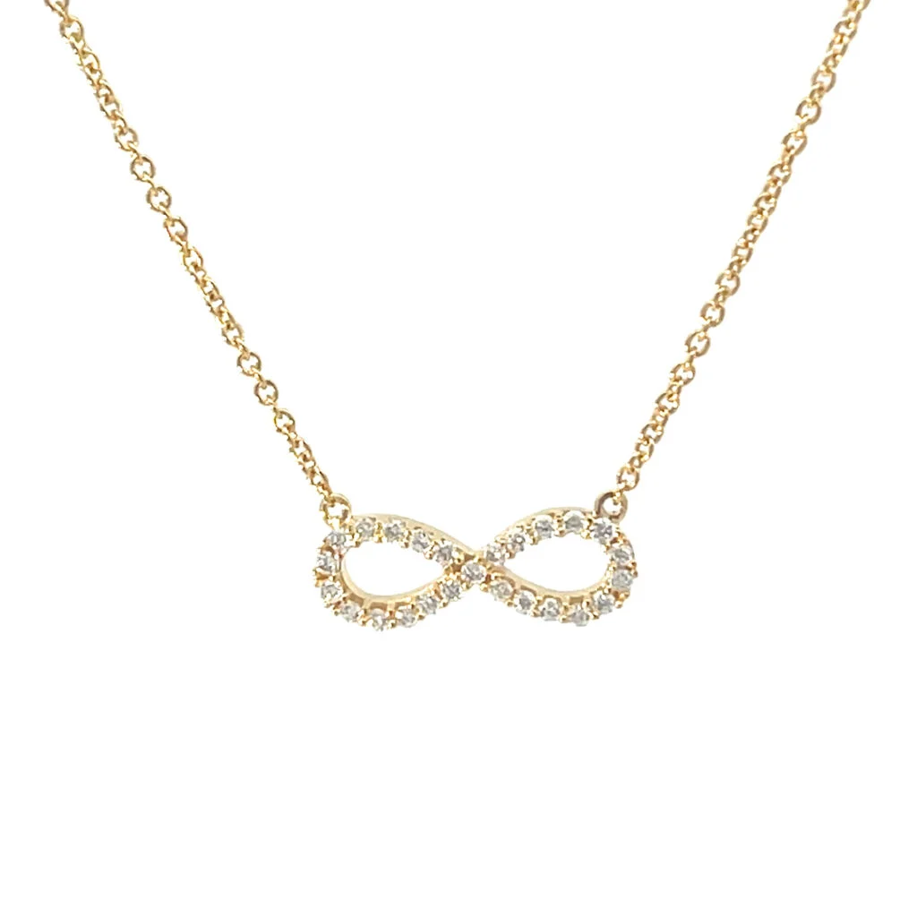 Ein Schmuckstück, das von Ewigkeit erzählt. Diese zarte Halskette aus warm schimmerndem 585 Gelbgold trägt ein filigranes Unendlichkeits-Symbol, besetzt mit 25 funkelnden Brillanten (0,150 ct, H/Si). Jeder Stein reflektiert das Licht wie ein kleiner Moment voller Bedeutung – ein Lächeln, eine Erinnerung, ein Gefühl, das bleibt. Die feine Ankerkette mit einer Länge von 45 cm legt sich sanft an die Haut und begleitet Sie mühelos durch den Tag, ob als leises Statement im Alltag oder als glänzender Akzent zu besonderen Anlässen.