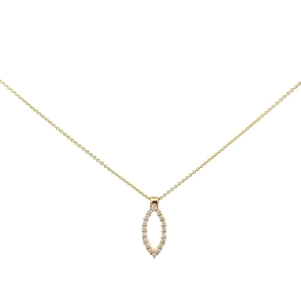 Dieser edle Brillantanhänger aus 585er Gelbgold vereint klassische Eleganz mit feiner Handwerkskunst. An einer 45 cm langen, filigranen Ankerkette präsentiert sich der Anhänger in stilvoller Navette-Form, besetzt mit funkelnden Brillanten im Gesamtgewicht von 0,100 ct. Die Steine in der Farbe H (feines Weiß) und Reinheit SI verleihen dem Schmuckstück ein brillantes Leuchten und unterstreichen seine hochwertige Ausstrahlung. Der warme Ton des 14-karätigen Gelbgolds bildet einen eleganten Kontrast zum kühlen Glanz der Brillanten. Das harmonische Zusammenspiel der Materialien macht diese Kette zu einem zeitlosen Begleiter – ideal für festliche Anlässe, besondere Momente oder als stilvoller Akzent im Alltag.