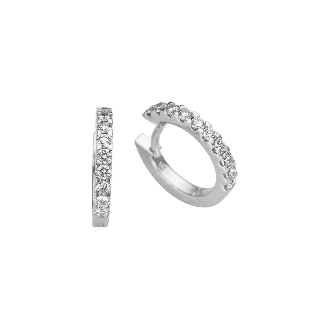 Entdecken Sie den Glanz exklusiver Eleganz mit den Creolen von Burkhardt + Bischoff. Diese exquisiten Ohrringe, meisterhaft gefertigt aus feinstem Weißgold, sind mit einer Reihe präzise geschliffener Diamanten besetzt, die bei jeder Bewegung spektakulär funkeln. Diese Ohrringe bieten eine Balance aus klassischem Charme und moderner Raffinesse.