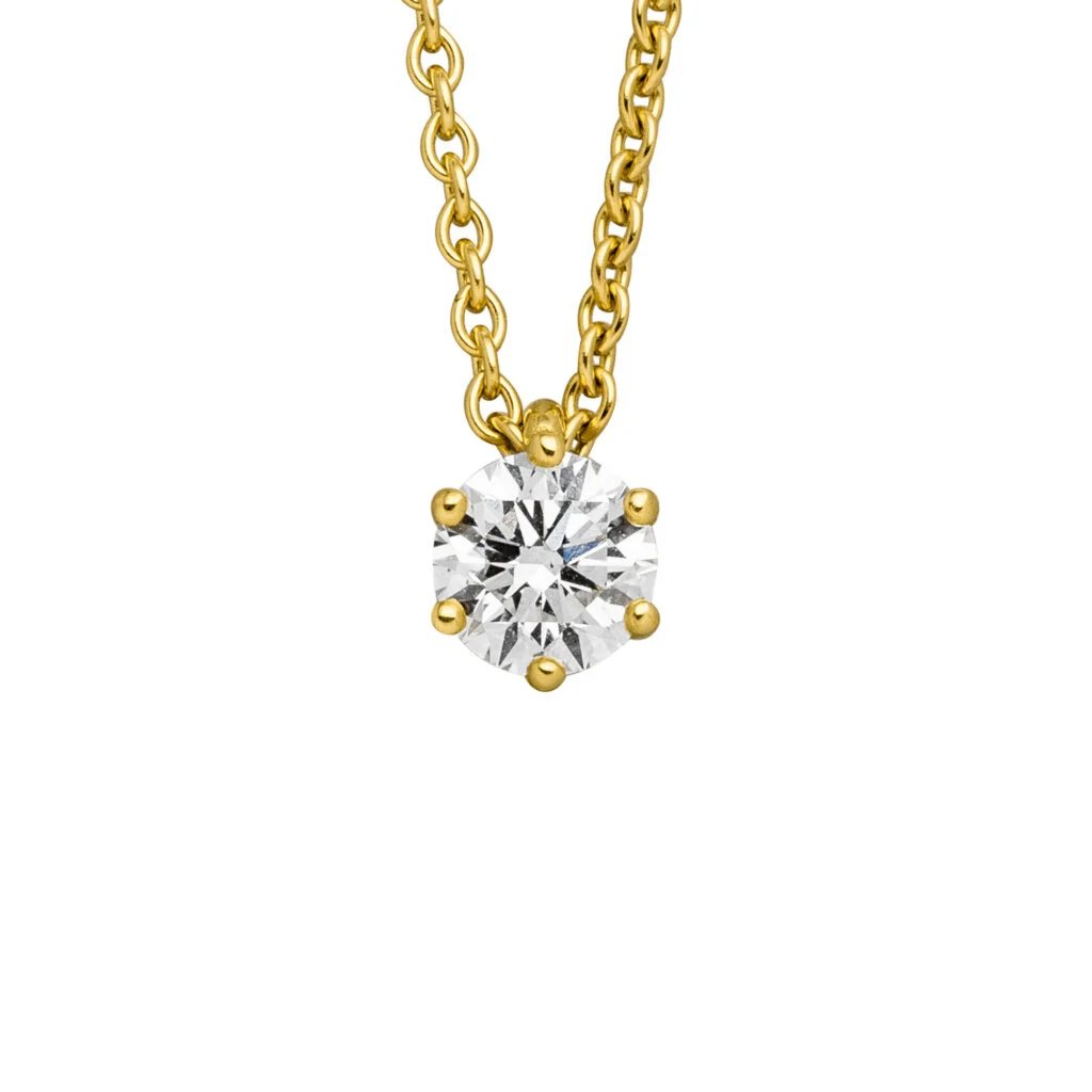 Unser Solitär-Schmuck inszeniert Brillanten in Vollendung. Damit die Brillanten ihre Strahlkraft vollends entfalten können, wurde die Fassung so filigran konstruiert, dass Sie ihr unvergleichliches Feuer von den verschiedenen Seiten aus betrachten können.