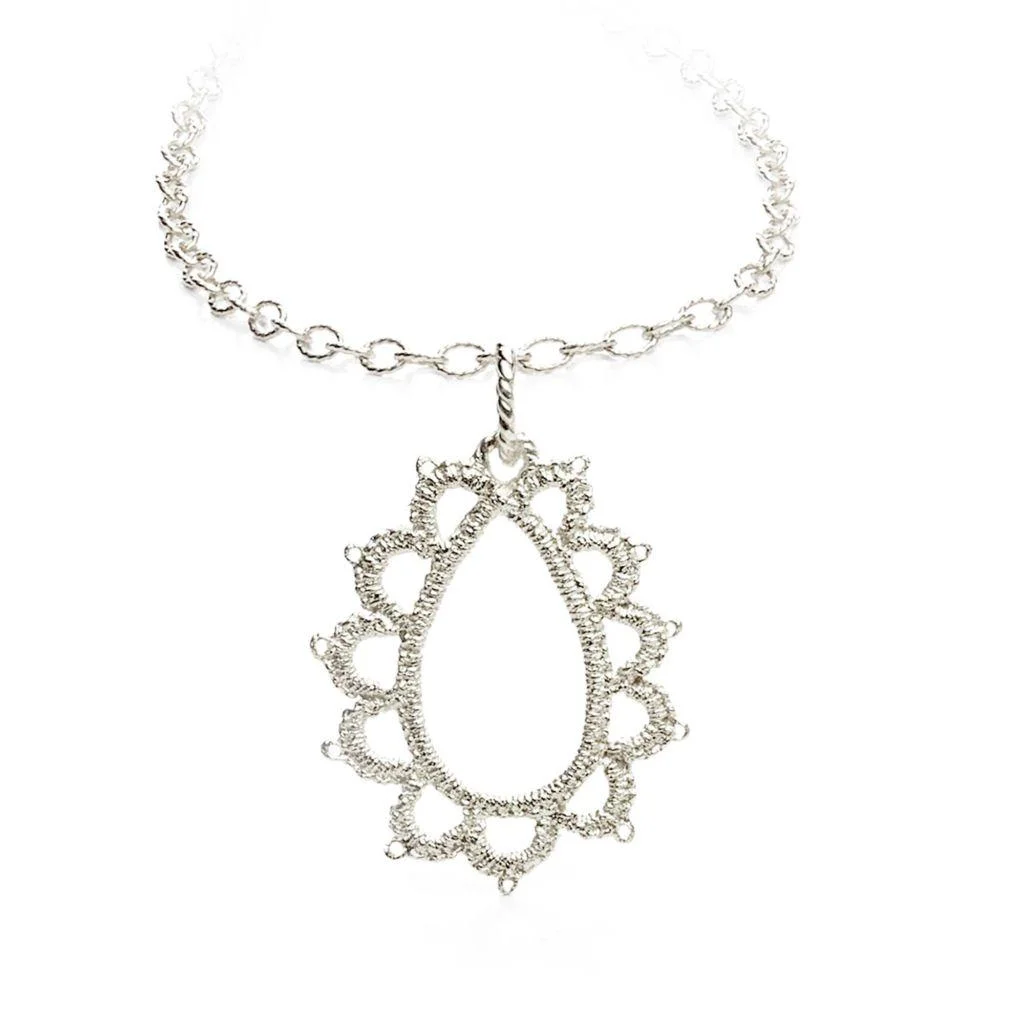 Der Anhänger Anna besticht durch seinen filigranen Cut-Out-Look. Namensgeberin Anne Boleyn ist die bekannteste der sechs Frauen König Heinrichs VIII. von England und wurde als seine Favoritin später auch Königin. Ihre faszinierende Persönlichkeit diente als historische Vorlage für die Oper Anna Bolena und für die Schmuckkreationen Anna von Brigitte Adolph. Auf einem Gemälde entdeckte die Designerin den Ziersaum, der Annes Robe schmückt: Feine Bögen mit einer kleinen Schlinge. In Tropfenform zu Ohrhängern, Anhänger und Ring geformt, lassen sie ihre Trägerin geradezu königlich strahlen. Der Anhänger wirkt am besten an einem aus fein kordiertem Draht gefertigten Collierkettchen von Brigitte Adolph wie die 42 cm oder 45 cm lange XS-Chain.. Die Gesamtlänge des Anhängers beträgt 2 cm.Der Anhänger hat einen Durchmesser von 14 mm.