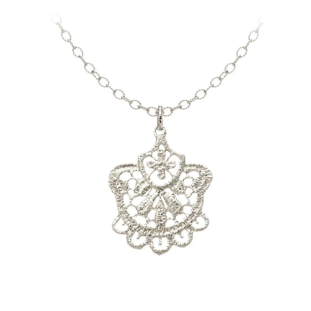 Billie-Jean ist filigranes Spitzendesign mit einem verwegenen Look, ein Traum von Abenteuer und wilder Freiheit. Der Anhänger wirkt am besten an einem aus fein kordiertem Draht gefertigten Collierkettchen von Brigitte Adolph wie die 42 cm oder 45 cm lange XS-Chain.