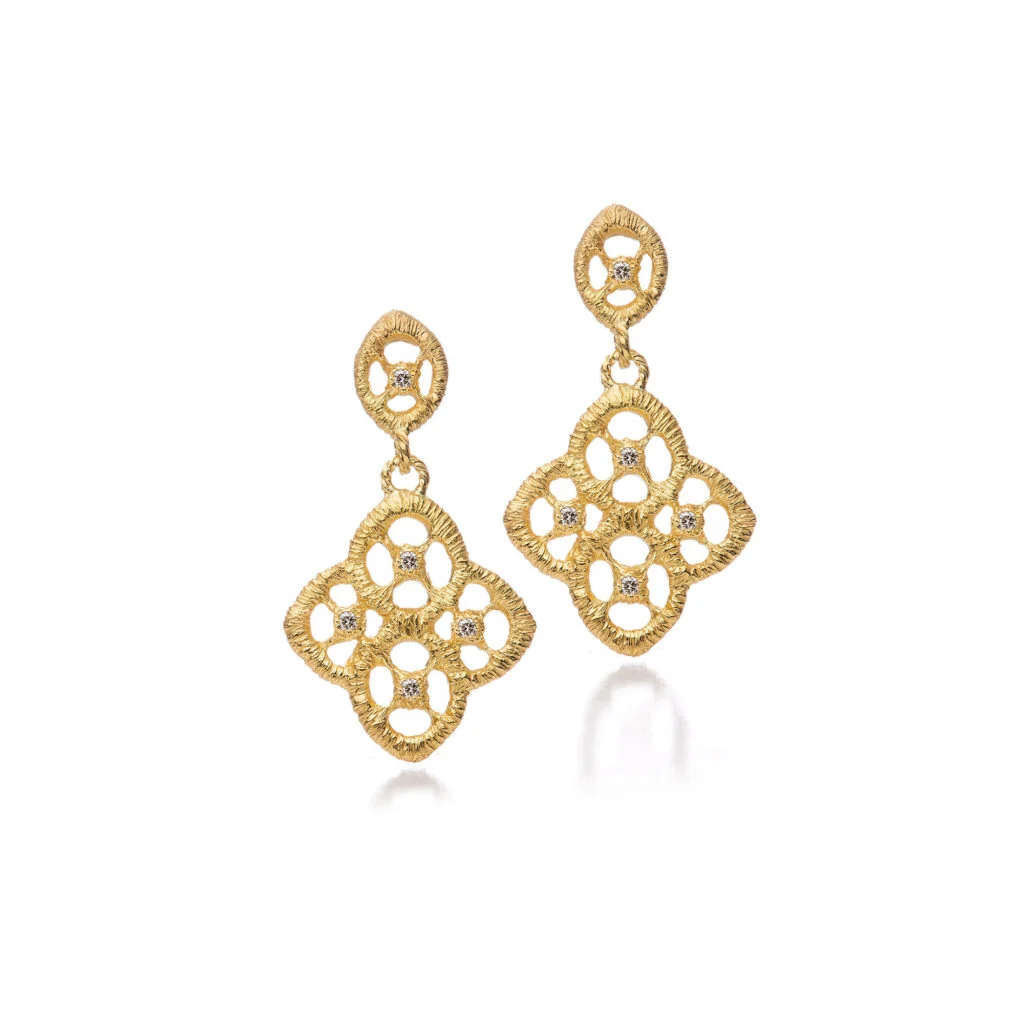 Leichtigkeit und Lebensfreude, Landschaft, Kultur und Mode – Italien verführt mit einem ganz besonderen Charme und verkörpert die Sehnsucht nach dem perfekten Urlaub, nach Romantik und der Kunst zu leben. Ein kleines Stück dieses einzigartigen Lebensgefühls offenbart sich in den Ohrringen Chiara II, die mit ihren ornamentalen Muster an die reich verzierten Paläste Venetiens erinnern und mit ihrer durchbrochenen Struktur mühelose Leichtigkeit versprüht.