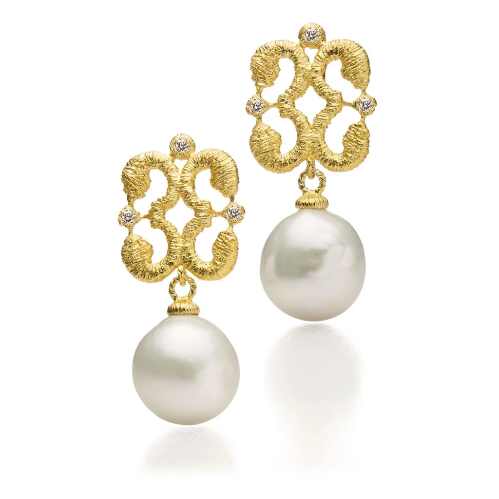 Der Zauber des Orients entfaltet sich besonders eindrucksvoll in Marrakesch. In der Altstadt, die zum UNESCO Weltkulturerbe gehört, reihen sich viele architektonisch bedeutsame Gebäude aneinander, überall schmückt reiche Ornamentik die Fassaden. Wir widmen die quadratisch geformten Ohrringe Marrakesh Square den schönsten Plätzen Marrakeschs und schmücken sie – getreu der Bezeichnung „Perle des Südens“ – mit feinen Süßwasser-Barockperlen.