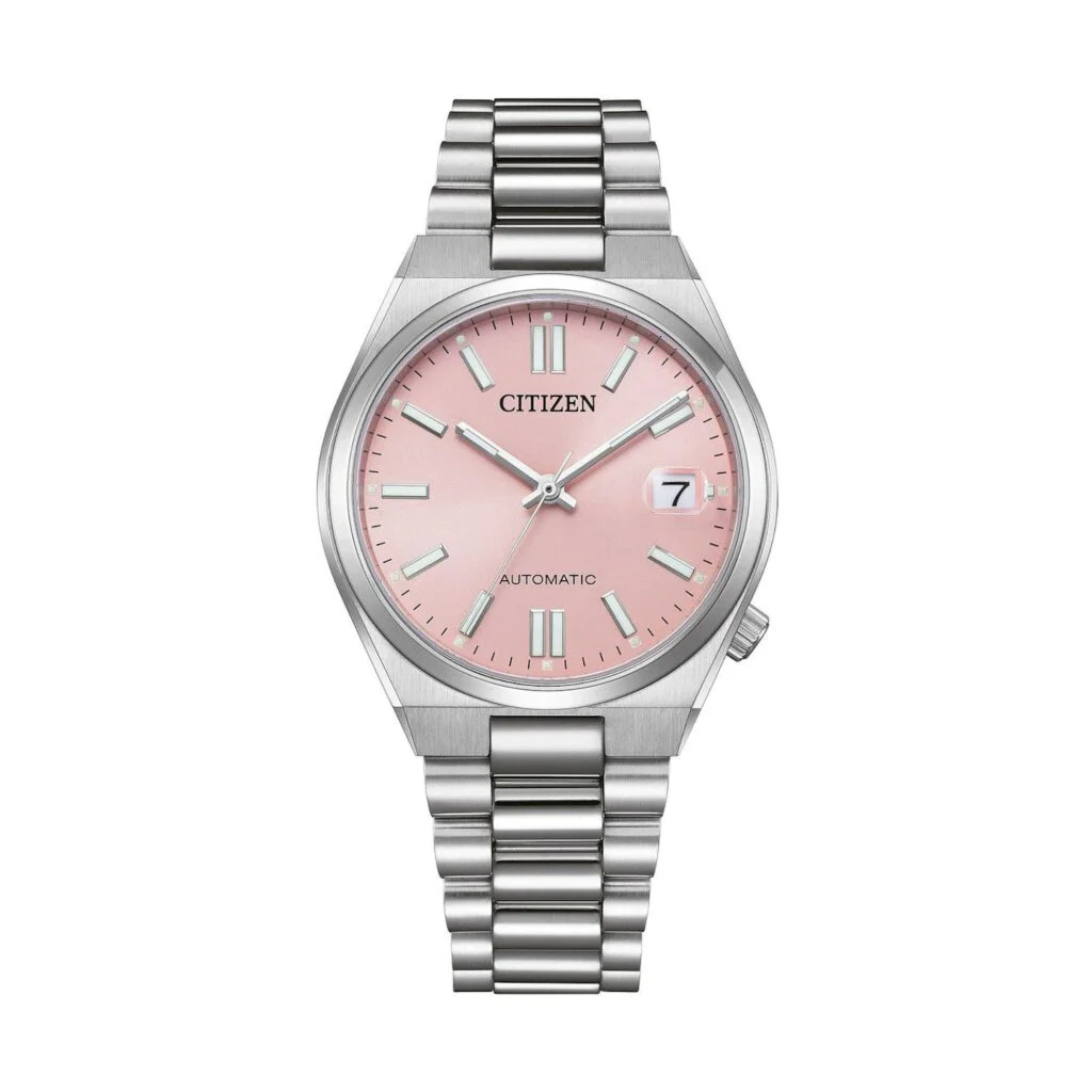Die Citizen TSUYOSA NJ0200-50Z präsentiert sich als stilvolle Erweiterung der beliebten TSUYOSA-Kollektion. Mit ihrem zarten roséfarbenen Zifferblatt verleiht sie jedem Outfit eine frische, moderne Note und spricht gleichermaßen Damen wie Herren an. Das kompakte Edelstahlgehäuse mit einem Durchmesser von 37mm sorgt für angenehme Proportionen am Handgelenk und macht die Uhr besonders vielseitig tragbar. Das hochwertige Edelstahl-Armband mit abgerundeten Gliedern bietet hohen Tragekomfort und eine elegante Optik. Geschützt wird das Zifferblatt von kratzfestem Saphirglas, das durch die integrierte Lupe über dem Datumsfenster bei 3 Uhr ergänzt wird.