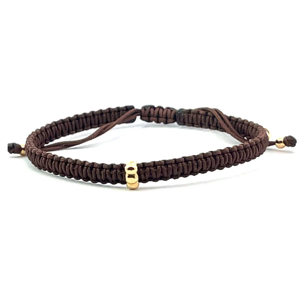 Natürlich, edel und mit einer leisen Raffinesse – dieses handgeknüpfte Makramee-Armband verbindet warme Erdtöne mit luxuriösen Details aus 750 Gelbgold. Das tiefe Braun des Bands strahlt Ruhe und Bodenständigkeit aus, während das feine Goldelement dezent glänzt und dem Schmuckstück eine edle Note verleiht. Mit einer Länge von 16,5 cm und verstellbarem Zugverschluss sitzt das Armband angenehm und passt sich jedem Handgelenk perfekt an. Ob einzeln getragen oder in Kombination mit anderen Accessoires – es verkörpert schlichte Eleganz und modernen Stil. Dieses Armband steht für Authentizität, Beständigkeit und einen Hauch von Luxus – ein dezentes Statement für Menschen, die Schönheit im Detail und echte Handwerkskunst schätzen.