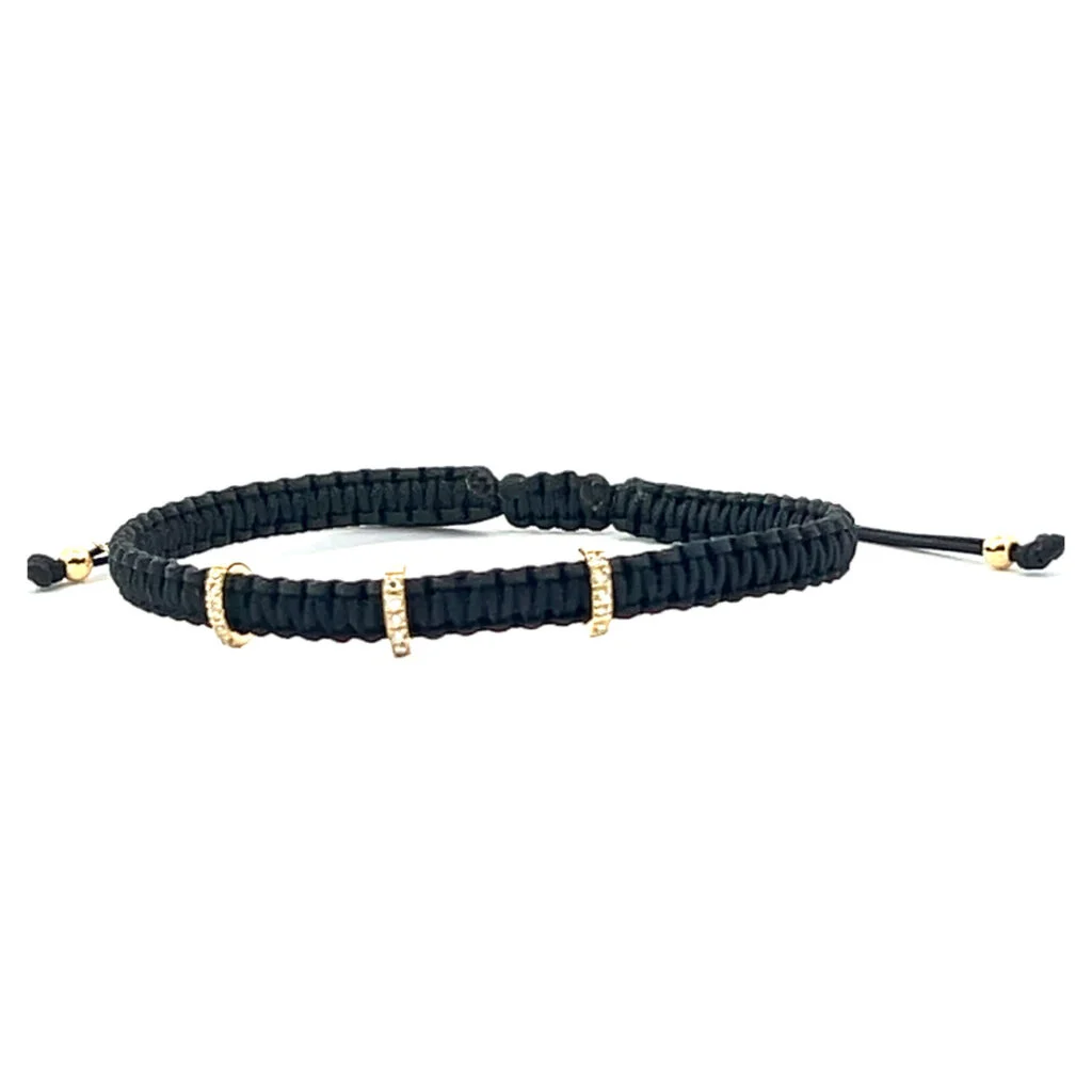 Kraftvoll, elegant und von zeitloser Schönheit – dieses handgefertigte Makramee-Armband vereint luxuriöse Materialien mit moderner Raffinesse. Das tiefschwarze Band steht für Stärke, Stilbewusstsein und Klarheit, während die feinen Applikationen aus 750 Gelbgold einen warmen Glanz verleihen. Zarte Brillanten (0,075 ct F/VSI) fangen das Licht auf edle Weise ein und verleihen dem Armband ein dezentes Funkeln, das niemals aufdringlich wirkt. Mit einer Länge von 16,5 cm und verstellbarem Verschluss passt sich das Armband angenehm an und sorgt für höchsten Tragekomfort. Ein Schmuckstück, das durch seine Schlichtheit beeindruckt und in jedem Detail Exklusivität ausstrahlt – perfekt für alle, die Understatement mit einem Hauch von Luxus lieben.