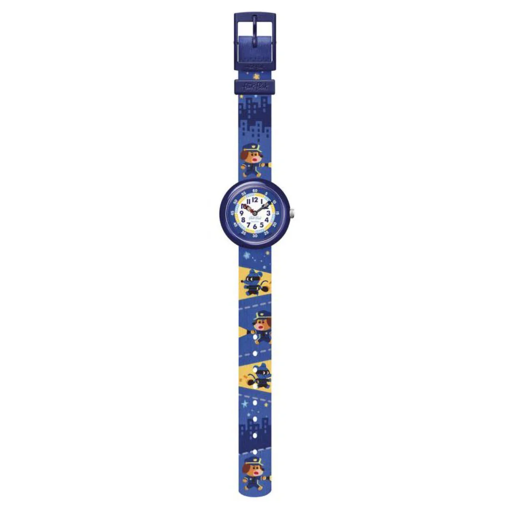 Schnapp sie dir! Unsere blau-gelbe Kinderuhr mit freundlichen Polizisten und frechen Dieben ist ein lehrreiches Geschenk für abenteuerlustige Kids.