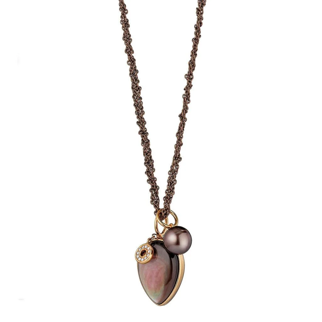 Erleben Sie die Harmonie von Luxus und Design mit der Gellner Melange Halskette. Gefertigt aus feinstem 925 Sterlingsilber und 750 Roségold, kombiniert diese exquisite Kette elegantes Perlmutt mit einer zentralen Tahiti-Perle, umgeben von elf strahlenden Brillanten mit einem Gesamtgewicht von 0,055 Karat. Jedes Detail dieser Halskette wurde sorgfältig konzipiert, um eine perfekte Balance zwischen modernem Chic und zeitloser Eleganz zu schaffen. Ideal für den Alltag oder besondere Anlässe, diese Kreation von Gellner ist ein wahres Meisterstück, das Ihre Schönheit unterstreicht und Ihre Garderobe bereichert