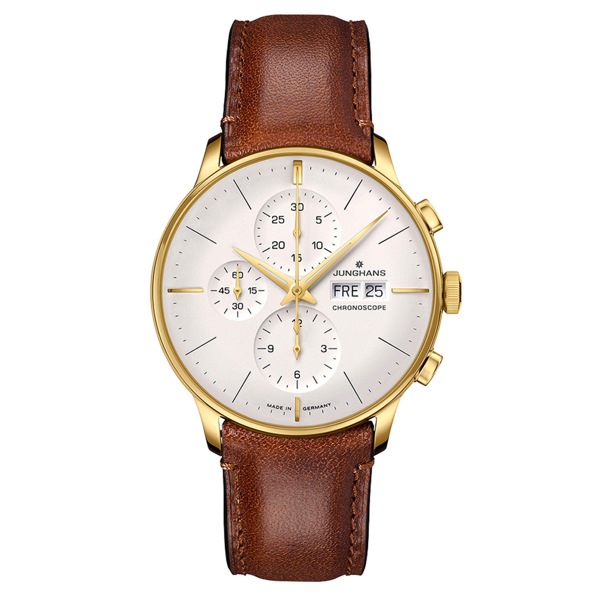 Elegant oder dynamisch? Eine Frage, die sich für die Meister Chronoscope nicht stellt. Denn die Uhr verbindet mühelos eine klassische Anmutung mit sportlichen Funktionen. Typisch für die Meister Linie sind die charakteristischen, schalenförmigen Vertiefungen für die Hilfszifferblätter.