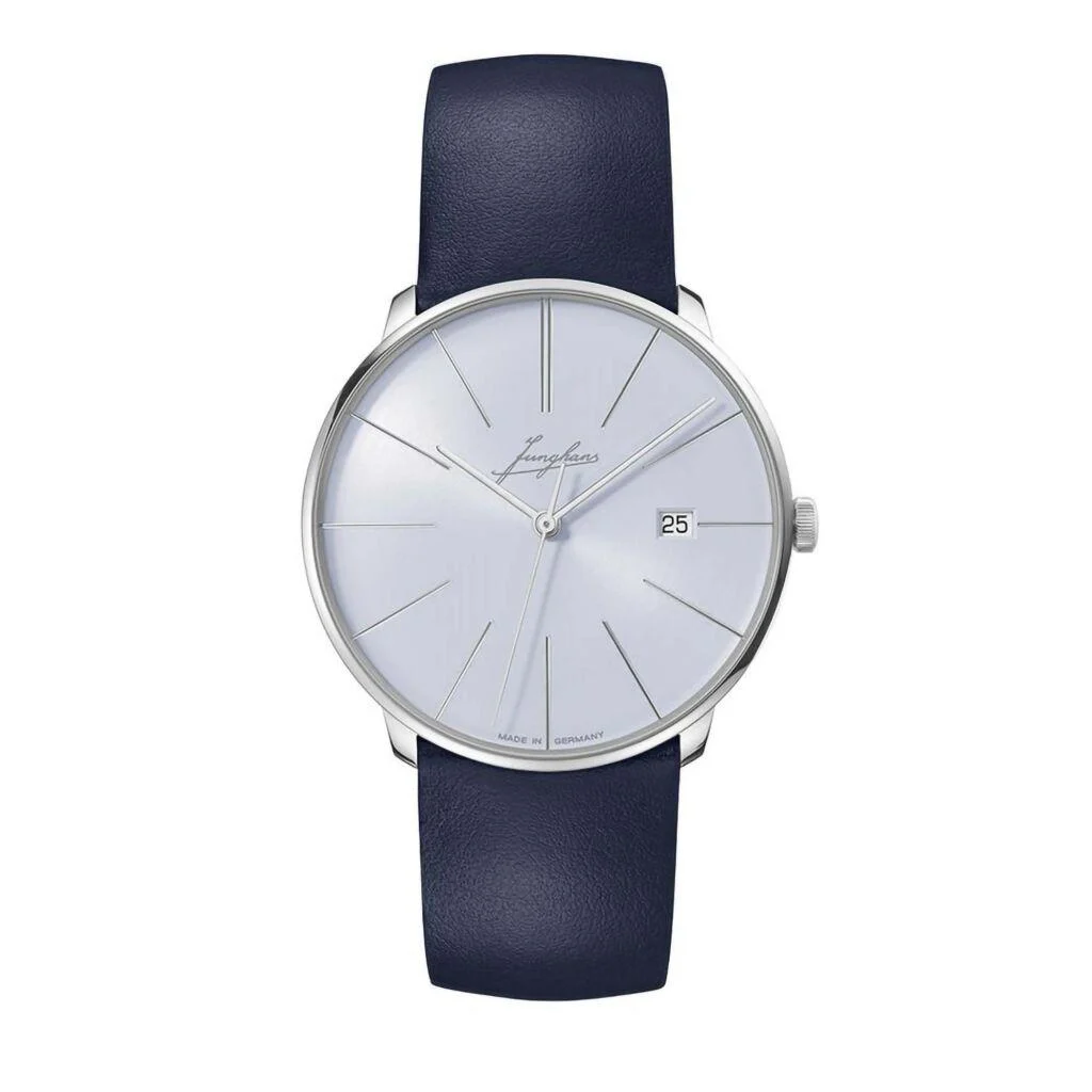 Die Meister fein Automatic Signatur besticht durch viele feine, wertvolle Details: Wie das flache und diskusförmige Gehäuse. Wie das gewölbte Front- und Bodenglas aus entspiegeltem Saphirglas. Wie das Zifferblatt mit einem historischen Junghans Logo und die dezenten diamantierten Linien für die Stundenmarkierungen. Durch den extragroßen Sichtboden kann man den eigens entwickelten zweischenkligen Rotor bewundern.