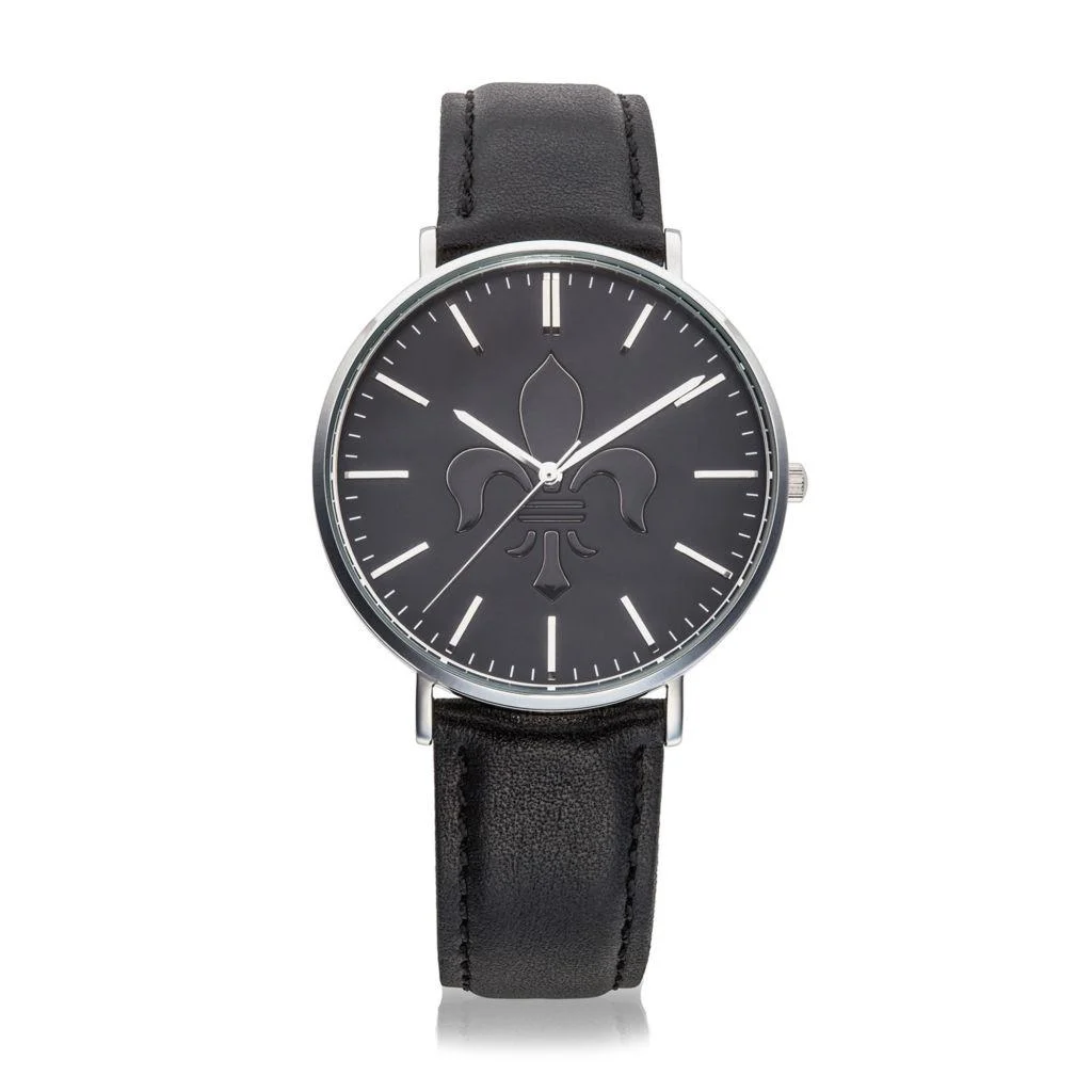 Die Fulda-Lilie hat sich zum prägnantesten Symbol der Barockstadt entwickelt und ziert die neueste Fulda-Uhr aus dem Hause Bott. Das Lilien-Motiv ist flächig geprägt und glänzt auf mattschwarzem Grund. Mit 41 mm Durchmesser ist die Uhr sowohl für Damen als auch für Herren tragbar. Sie besticht mit robustem Edelstahlgehäuse, hochwertigem Quarzuhrwerk, Mineralglas und einer Wasserdichtigkeit von 5 ATM.