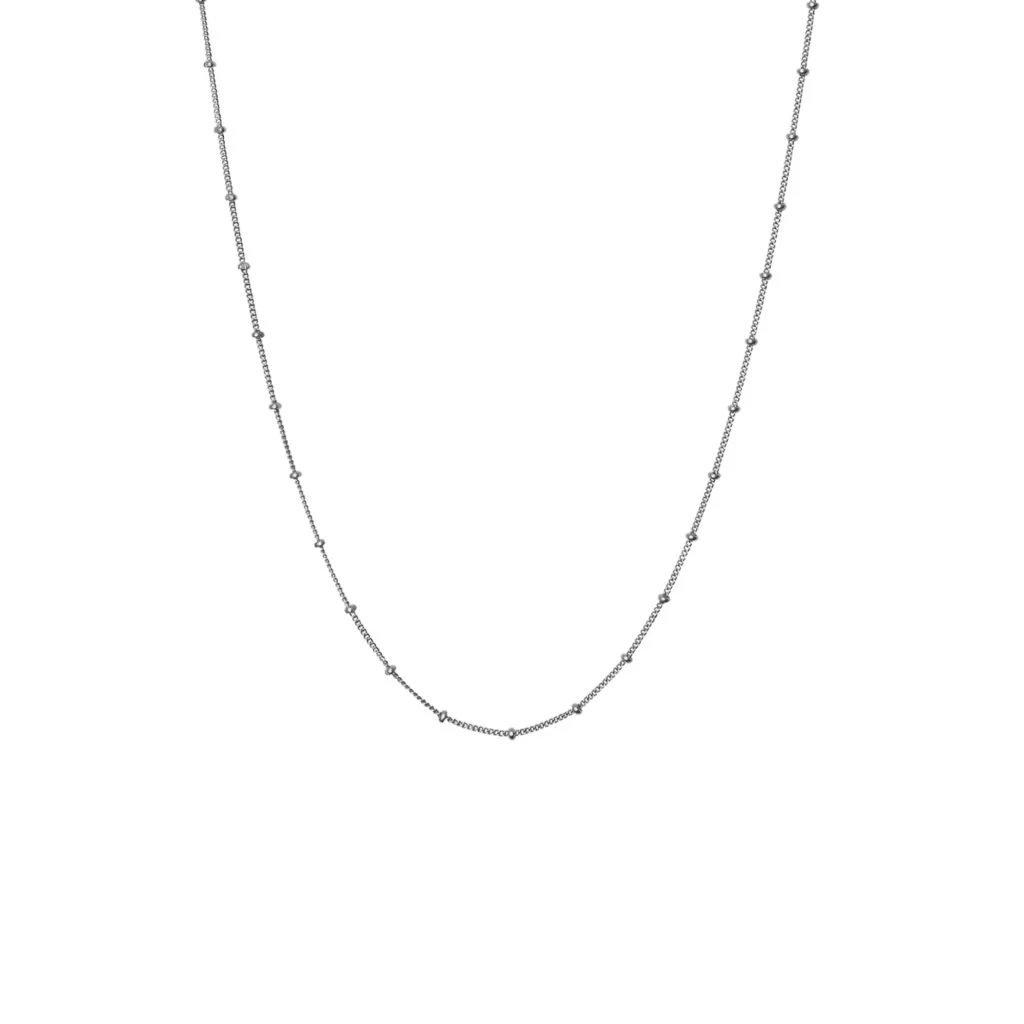 Schlichte Kette mit kleinen, feinen Kugeln, die über die gesamte Länge verteilt sind.