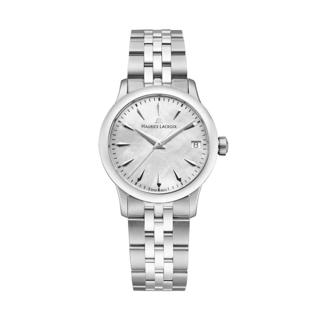 Diese Uhr ist kein Schmuckstück – sie ist ein Gefühl. Das sanfte Perlmutt-Zifferblatt, die schlanken Zeiger, das kühle Edelstahl: Alles an der Maurice Lacroix 1975 (Art.-Nr. 751006-SS002-160-1) spricht eine klare Sprache. Sie sagt: „Ich weiß, was ich will.“