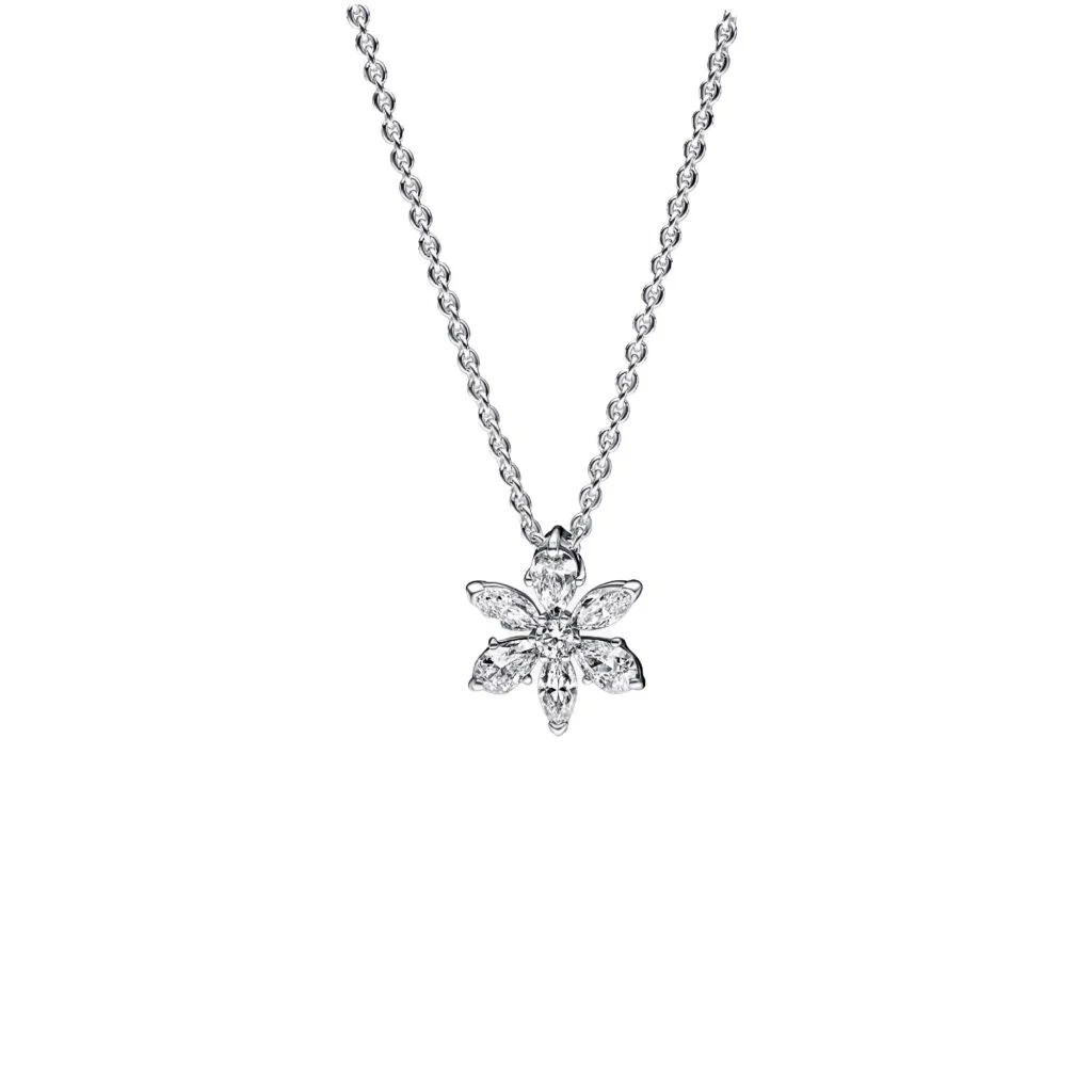 Bring die Schönheit der Natur in deinen Schmuck. Diese Halskette aus Sterling-Silber ist von Blütenblatt- und Blattelementen inspiriert. Eine elegante Neuinterpretation der Formen der Natur.