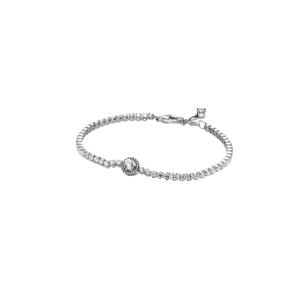Perfektioniere dein Outfit mit einem schimmernden Schmuckstück aus Sterling-Silber. Es hat in der Mitte ein großer Stein mit einem Kranz aus Cubic Zirkonia. Wird mit einem Karabinerverschluss geschlossen. Kombiniere es mit anderen schimmernden Designs zu einem klassischen Look.