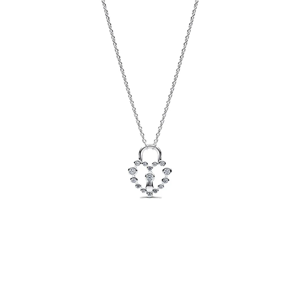 Mit unserer Anhänger-Kette mit herzförmigem Vorhängeschloss aus Sterling-Silber schließt du die Liebe sicher ein. Er glänzt mit Cubic Zirkonia in verschiedenen Größen, die ein Herz bilden, und hat ein zentrales Vorhängeschloss als Symbol für Liebe und Einheit.