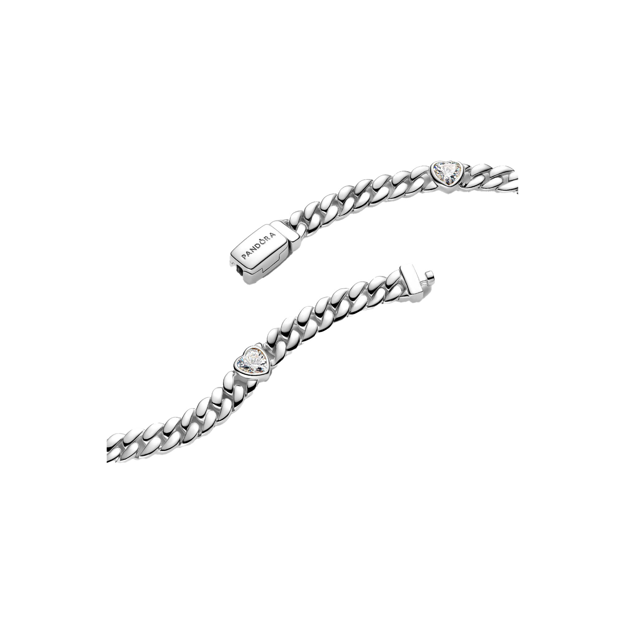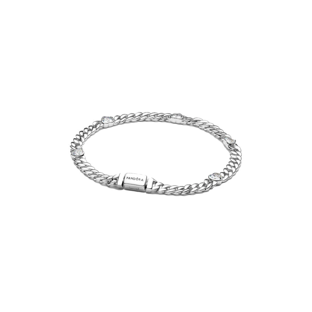 Feiere die Liebe mit unserem Armband mit Cuban-Kette aus Sterling-Silber. Mit herzförmigen Steinen, die in Abständen entlang des Armbands gesetzt sind, trägst du es als zeitloses Symbol für Zuneigung und Eleganz.