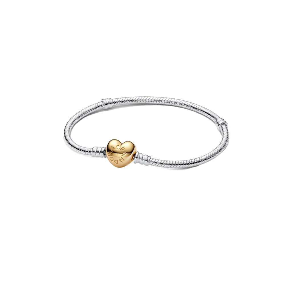 Eine romantische Version des beliebtesten Armbands von Pandora. Dieses handveredelte Schlangen-Gliederarmband aus Sterling-Silber mit 14 Karat vergoldetem herzförmigem Verschluss setzt alleine ein elegantes Statement – oder kombiniere es mit deinen Lieblingscharms.
