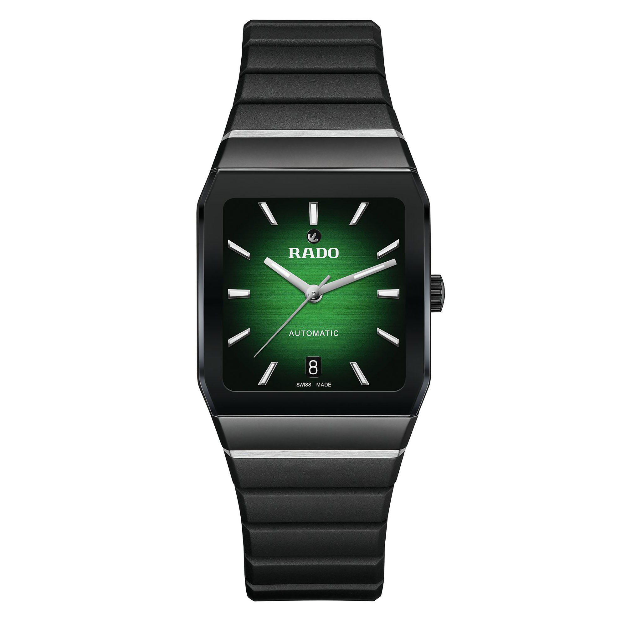 Erleben Sie die perfekte Symbiose aus avantgardistischem Design und hochwertiger Uhrmacherkunst mit der Rado Anatom Automatic. Ihr markantes, eckiges Gehäuse aus High-Tech-Keramik strahlt zeitlose Modernität aus und ist dabei besonders leicht und kratzfest. Das intensive grüne Zifferblatt verleiht der Uhr einen frischen, dynamischen Look, während die silbernen Zeiger für beste Ablesbarkeit sorgen.