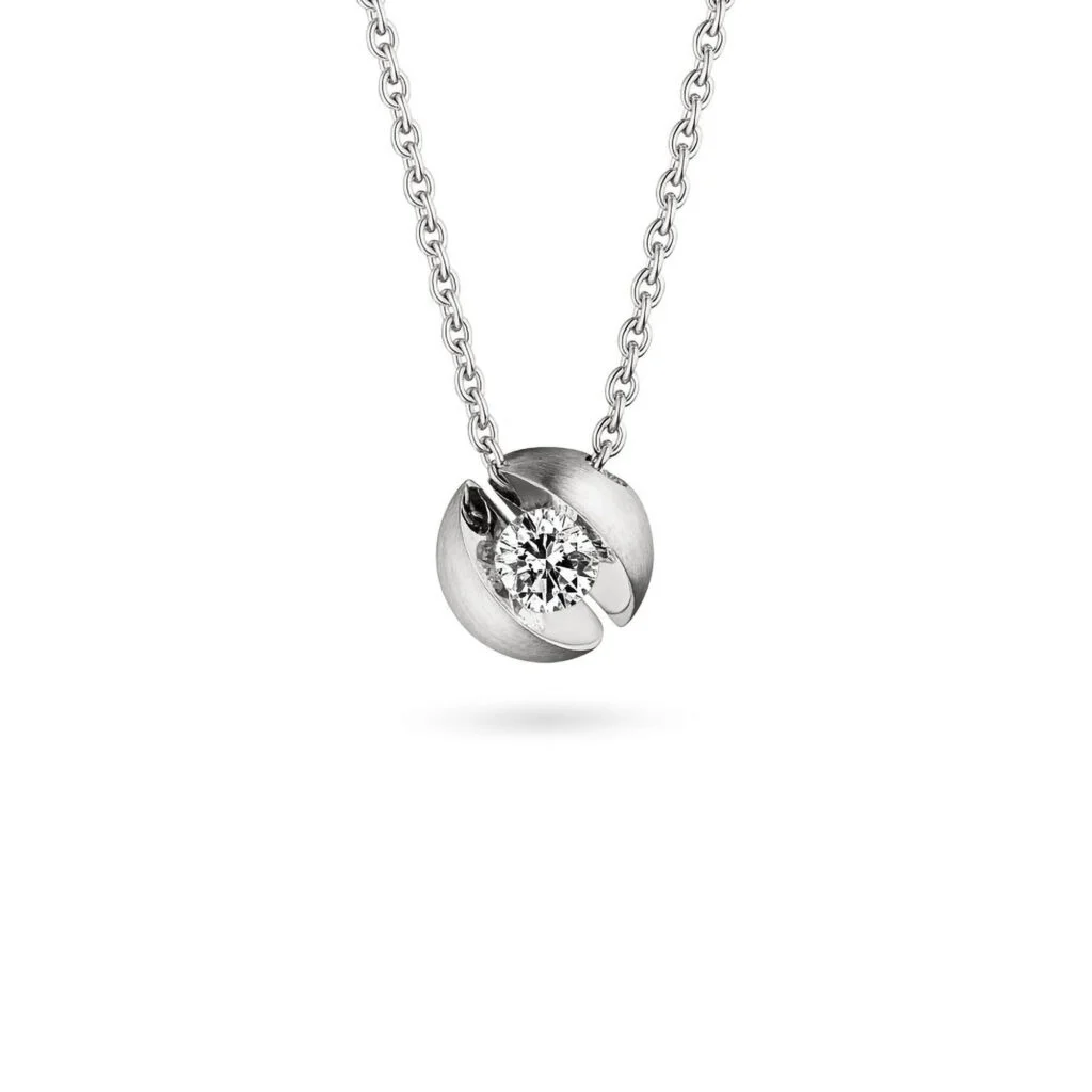 Aus hochwertigem Weißgold gefertigt, besticht die Oberfläche durch ein harmonisches Zusammenspiel mattierter und polierter Flächen, die dem Collier eine edle Optik verleihen. Diese liebevollen Details machen es zum perfekten Begleiter – ob als Symbol tiefer Verbundenheit, zu besonderen Anlässen oder als elegantes Highlight im Alltag.