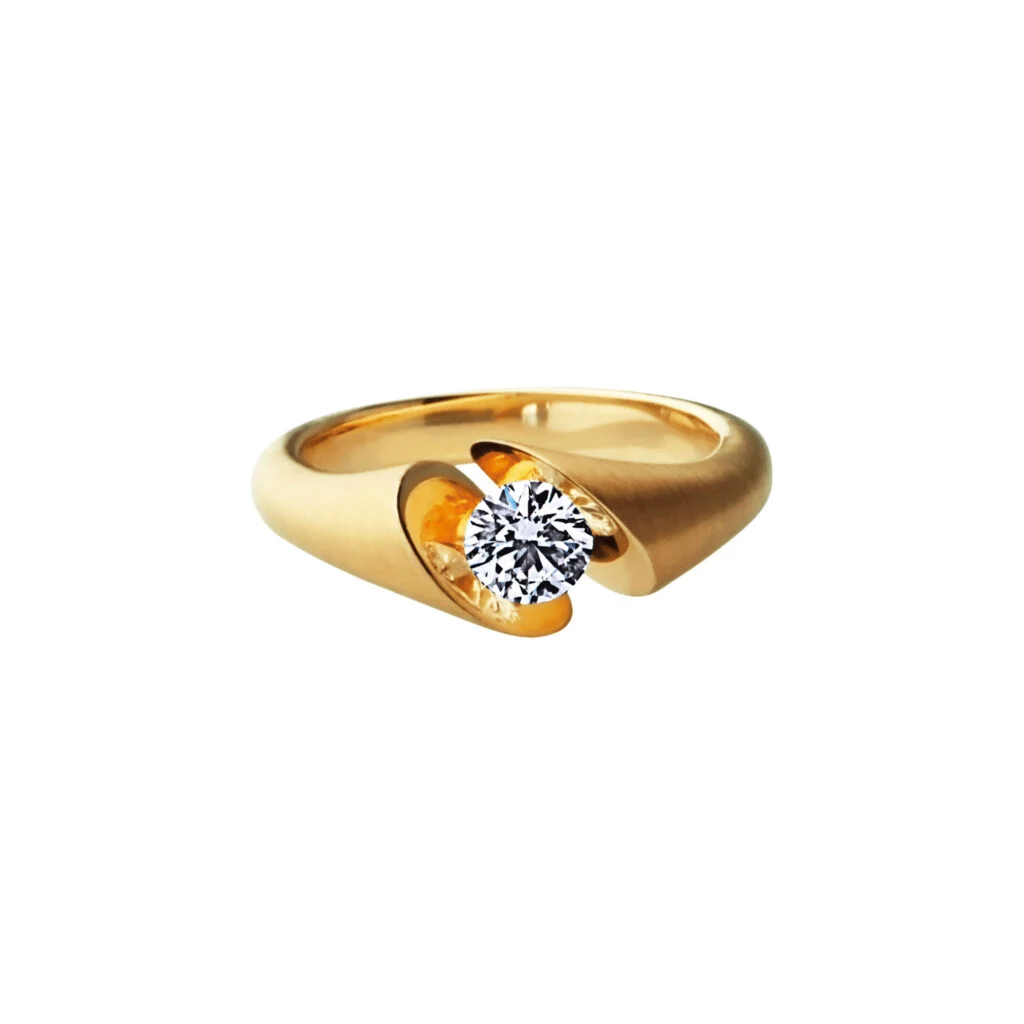 Der Schaffrath CALLA Brillantring in Gelbgold vereint zeitlose Schönheit mit edler Handwerkskunst. Inspiriert von der eleganten Form der Calla-Blüte, begeistert der Ring durch fließende Linien und harmonische Proportionen. Im Mittelpunkt steht ein funkelnder Brillant, kunstvoll eingebettet zwischen zwei sich umarmenden goldenen Blütenkelchen. Die matte Oberfläche des Gelbgoldes wird stilvoll durch glänzende Akzente ergänzt und betont das Funkeln des Diamanten eindrucksvoll.