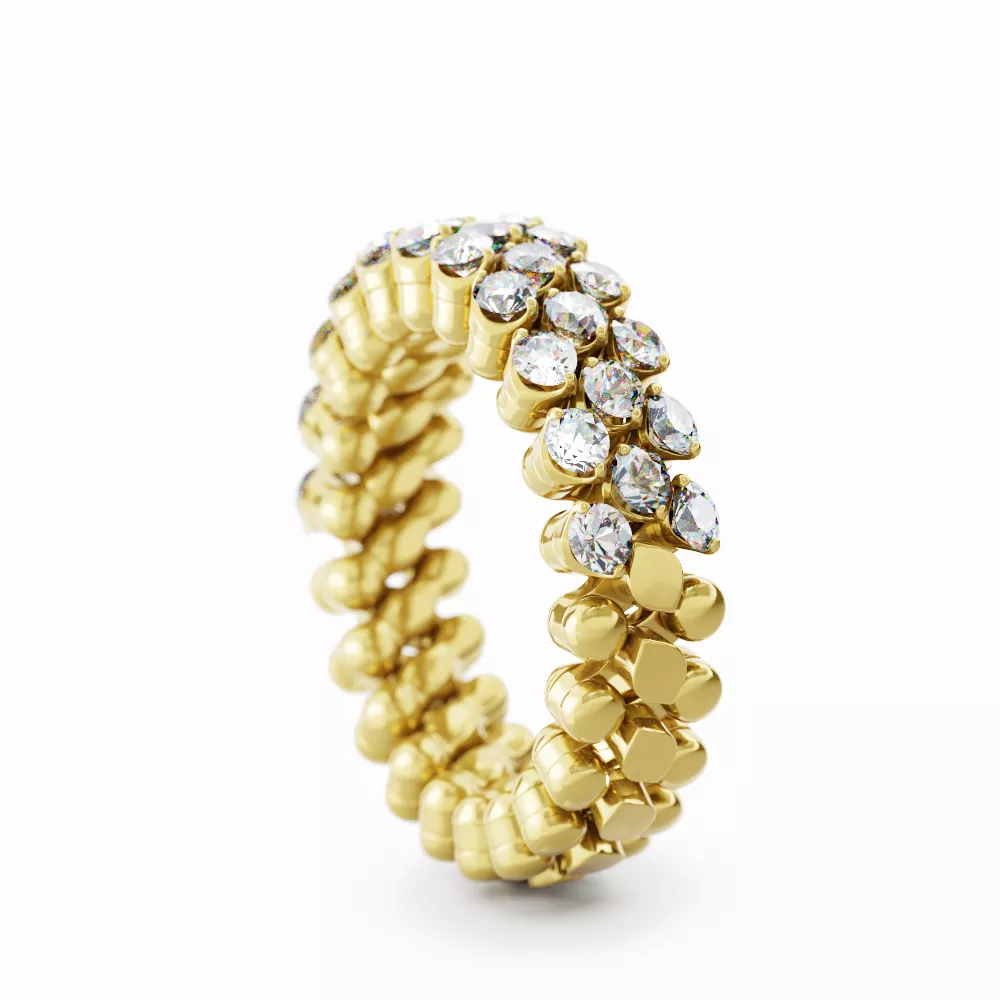 Eine Größe passt allen. Sie lassen sich auf bis zu zehn Ringgrößen schieben, einfach durch sanften Druck oder Auseinanderziehen. Es ist faszinierend, wie geschmeidig das geht und wie angenehm die Diamant-Ringe trotz tausender Schweißpunkte tragen lassen.