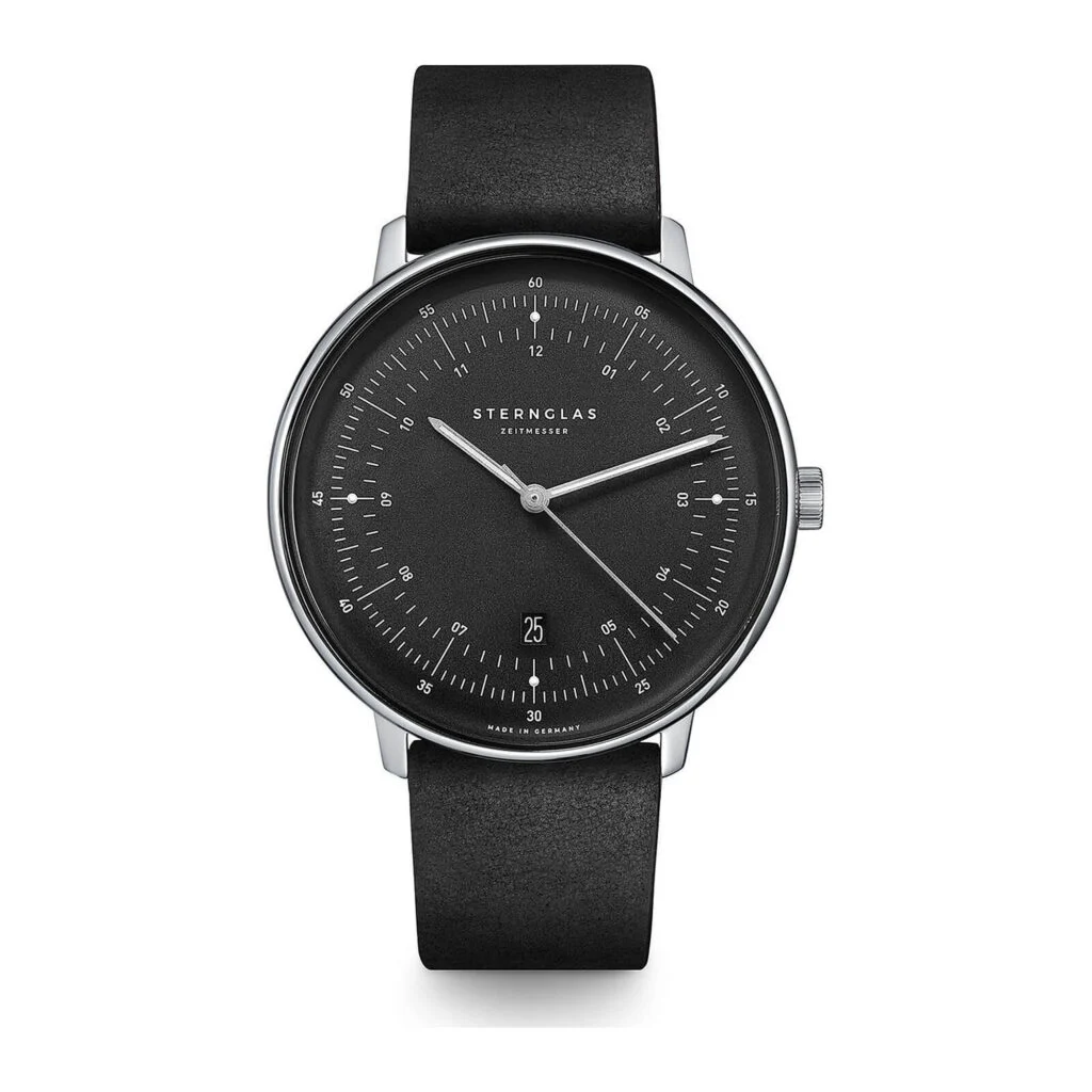 Erleben Sie die Sternglas Hamburg Quarz – eine Uhr, die mit ihrem 42-mm-Edelstahlgehäuse, dem graphitsatinierten Ziffernblatt und dem schwarzen Lederarmband den Geist der norddeutschen Hafenstadt einfangen. Inspiriert von maritimen Messinstrumenten, vereint sie klare Funktionalität mit zeitloser Ästhetik – perfekt für den modernen Entdecker, der Wert auf Stil, Praktikabilität und Präzision legt.
