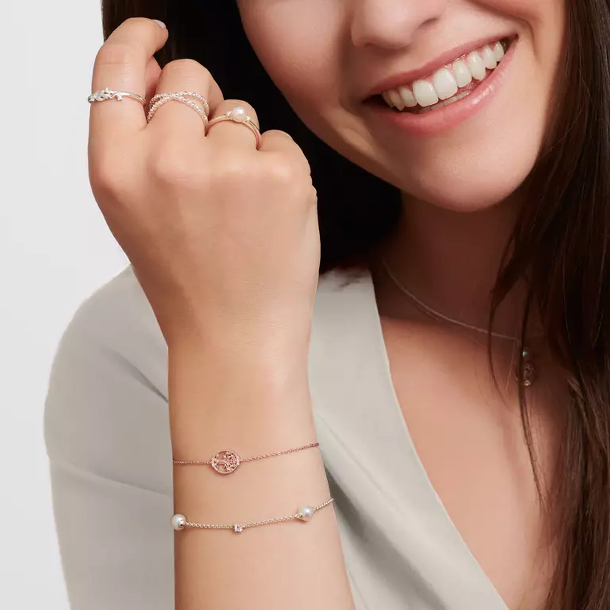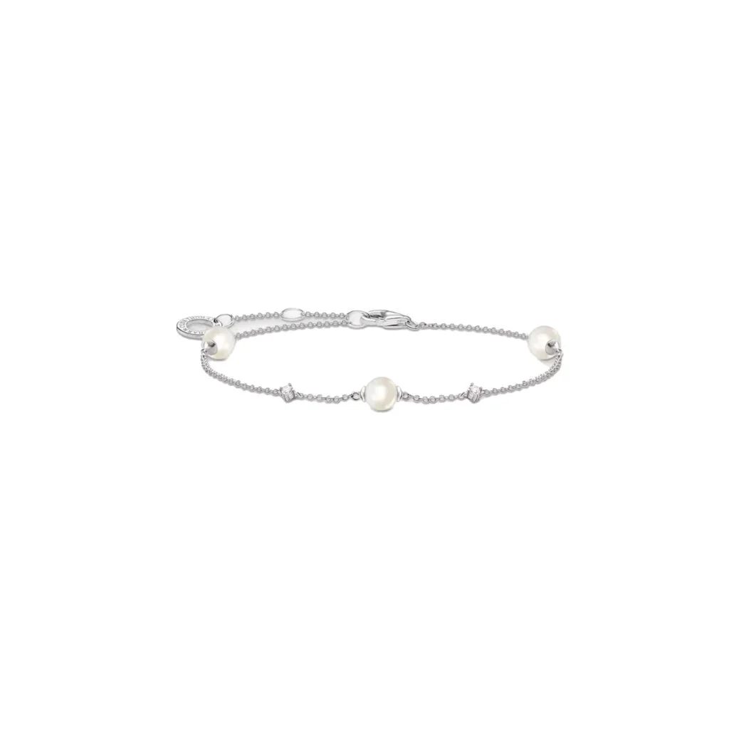 Dancing Pearls: Bei diesem Armband wechseln sich weiße Süßwasser-Zuchtperlen und funkelnde, weiße Zirkoniasteine ab. Es besteht aus hochwertigem recyceltem 925 Sterling Silber, ist detailliert gestaltet und mit einem Verlängerungskettchen versehen. Dieses ermöglicht es, die Länge bei 16,5, 18 und 19,5 cm ans Handgelenk anzupassen. Das Armband besticht mit seinem klassischen Design, das von THOMAS SABO neu gedacht wurde, und ist ein ideales Everyday-Schmuckstück. Es passt wunderbar zu jeder Uhr und lässt sich mit weiteren Armbändern, Armreifen und Armspangen zu individuellen Looks im Mix & Match-Stil kombinieren.