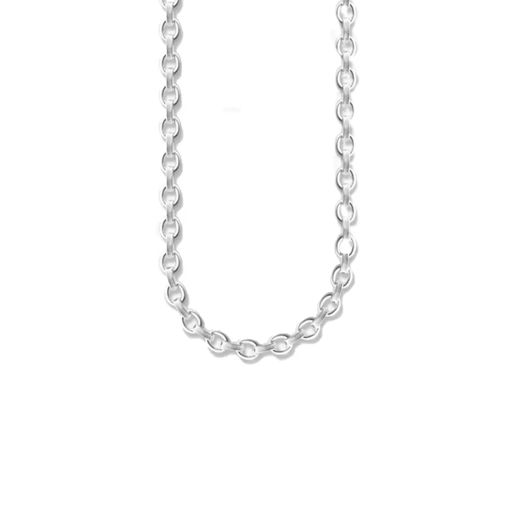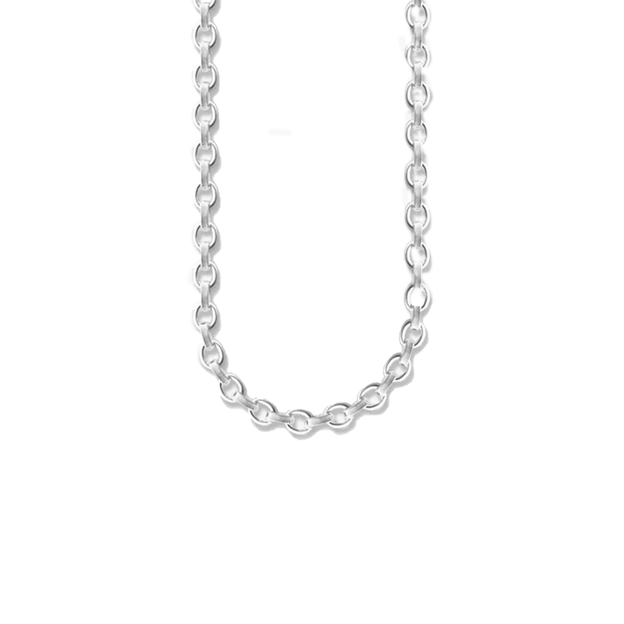 Die Weitankerkette besteht aus glänzendem recyceltem 925 Sterling Silber und ist in vier verschiedenen Längen von 45 bis 90 cm verfügbar. Die Silberkette ist 0,4 cm breit und wird mit einem Karabinerhaken geschlossen. Die Kette kann entweder schlicht und klassisch allein getragen werden, um einen Anhänger ergänzt werden oder mit Charms kombiniert werden. Dafür sollte zuerst ein Charm Carrier auf die Halskette gefädelt werden, an dem anschließend die Charm-Anhänger befestigt werden.