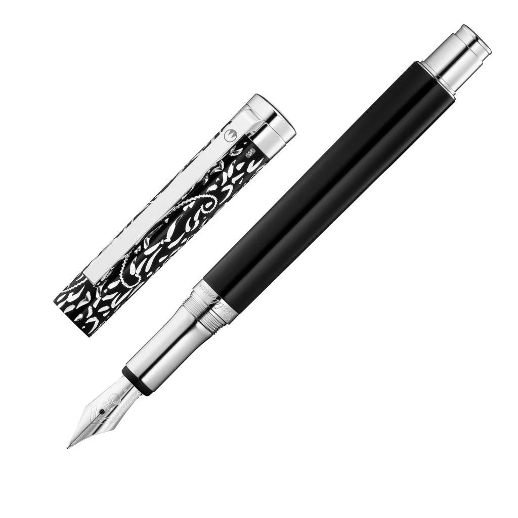 Der Füllfederhalter aus der Serie Xetra Vienna von Waldmann erscheint mit dem einzigartigen X-Format. Der Korpus aus massivem Sterling Silber in mehrschichtiger, schwarzer Brillantlackierung, hochglanzpoliert, harmoniert bestens mit der Wiener Handgravur. Durch diese einzigartige, mühevolle und aufwendige Handarbeit wird dieses Schreibgerät zu einem Schmuckstück der besonderen Art. Dadurch das diese Gravurart in Deutschland nur von sehr wenigen Graveuren beherrscht wird, wird dieses Kunstwerk besonders wertvoll. Lassen Sie sich durch dieses wunderbare Schreibgerät, ausgestattet mit einer Edelstahlfeder mit Iridiumpunkt, verzaubern.