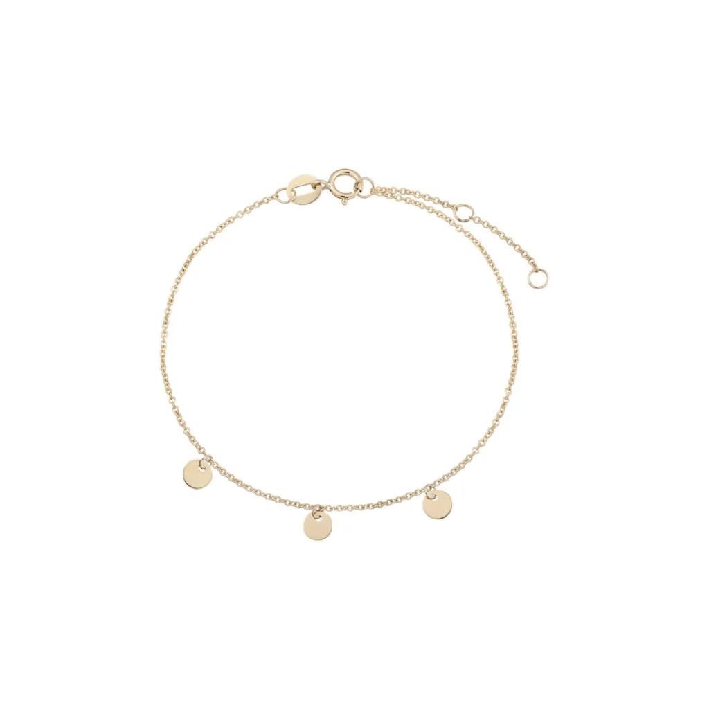 Arm Candy! Dieses wunderschöne Armband aus 14-karätigem Gelbgold schmiegt sich zart um dein Handgelenk und wird geschmückt von runden Plättchen, die bei jeder Bewegung mitschwingen. Das Schmuckstück verleiht deinem Everyday-Look eine Portion Glamour.
