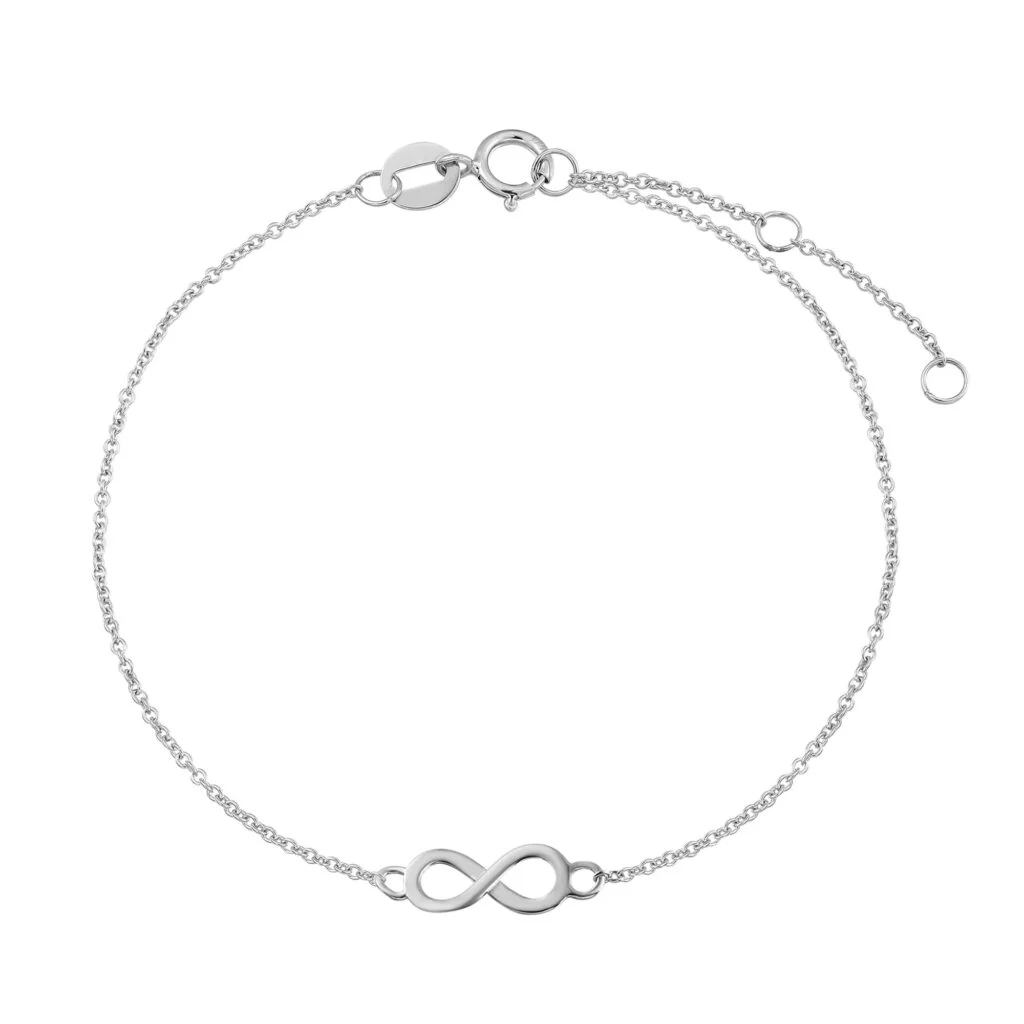 Dieses Infinity Armband ist aus 14-karätigem Weißgold gefertigt und darf in deiner Sammlung nicht fehlen. Das Schmuckstück symbolisiert Unendlichkeit und kann hervorragend kombiniert werden. Ein tolles Geschenk für Freunde und Familie!